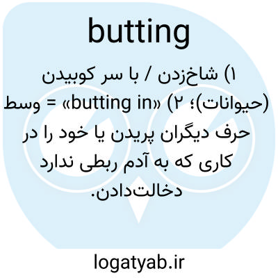 ۱) شاخ‌زدن / با سر کوبیدن (حیوانات)؛ ۲) «butting in» = وسط حرف دیگران پریدن یا خود را در کاری که به آدم ربطی ندارد دخالت‌دادن.