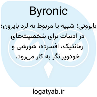 بایرونی؛ شبیه یا مربوط به لرد بایرون؛ در ادبیات برای شخصیت‌های رمانتیک، افسرده، شورشی و خودویرانگر به کار می‌رود.