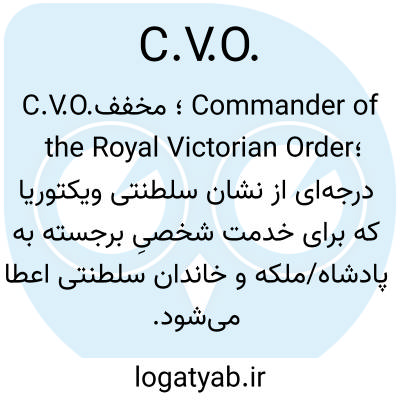 C.V.O.؛ مخفف Commander of the Royal Victorian Order؛ درجه‌ای از نشان سلطنتی ویکتوریا که برای خدمت شخصیِ برجسته به پادشاه/ملکه و خاندان سلطنتی اعطا می‌شود.