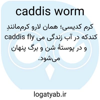 📌 همچنین به نامهای: کرم کیسهای. کرم کاه. لارو آبزی مگس کادیس، که یک غلاف محافظ به دور خود از ابریشم، شن، سنگ و غیره میسازد.