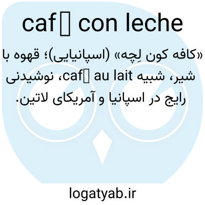 «کافه کون لِچه» (اسپانیایی)؛ قهوه با شیر، شبیه café au lait، نوشیدنی رایج در اسپانیا و آمریکای لاتین.