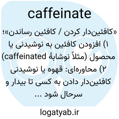 «کافئین‌دار کردن / کافئین رساندن»؛ ۱) افزودن کافئین به نوشیدنی یا محصول (مثلاً نوشابهٔ caffeinated) ۲) محاوره‌ای: قهوه یا نوشیدنی کافئین‌دار دادن به کسی تا بیدار و سرحال شود («بذار اول کافئینه بشم بعد حرف بزنیم»).