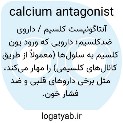 آنتاگونیست کلسیم / داروی ضدکلسیم؛ دارویی که ورود یون کلسیم به سلول‌ها (معمولاً از طریق کانال‌های کلسیمی) را مهار می‌کند، مثل برخی داروهای قلبی و ضد فشار خون.