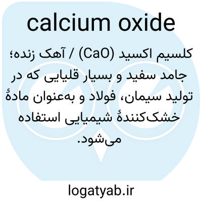 📌 همچنین به نامهای زیر شناخته میشود: آهک. آهک زنده. آهک سوخته. آهک کلسینه شده. آهک گدازنده. یک باز بلوری سفید که در تولید هیدروکسید کلسیم و پودر سفیدکننده و در ساخت شیشه، کاغذ و فولاد استفاده میشود. فرمول: CaO