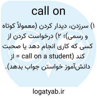 ۱) سرزدن، دیدار کردن (معمولاً کوتاه و رسمی)؛ ۲) درخواست کردن از کسی که کاری انجام دهد یا صحبت کند (call on a student = از دانش‌آموز خواستن جواب بدهد).