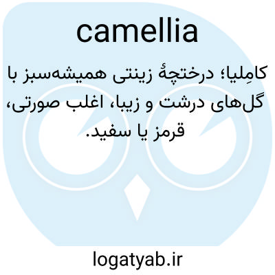 📌 هر یک از چندین درختچه از جنس کاملیا، به ویژه C. japonica، بومی آسیا، با برگهای براق همیشه سبز و گلهای سفید، صورتی، قرمز یا رزمانند رنگارنگ.