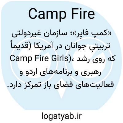 «کمپ فایِر»؛ سازمان غیردولتی تربیتیِ جوانان در آمریکا (قدیماً Camp Fire Girls)، که روی رشد رهبری و برنامه‌های اردو و فعالیت‌های فضای باز تمرکز دارد.
