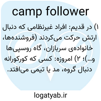 📌 یک غیرنظامی که رسماً با یک واحد نظامی مرتبط نیست، به ویژه یک روسپی، که یک اردوگاه ارتش را دنبال می‌کند یا در نزدیکی آن مستقر می‌شود.