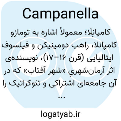 کامپانِلّا؛ معمولاً اشاره به تومازو کامپانلا، راهب دومینیکن و فیلسوف ایتالیایی (قرن ۱۶–۱۷)، نویسنده‌ی اثر آرمان‌شهریِ «شهر آفتاب» که در آن جامعه‌ای اشتراکی و تئوکراتیک را توصیف می‌کند.