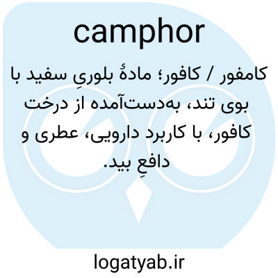 📌 کتون ترپن سفیدرنگ، شفاف، بلورین و خوشبو، C10H16O، که از درخت کافور به دست میآید و عمدتاً در ساخت سلولوئید و در پزشکی به عنوان یک ماده ضدالتهاب برای عفونتها و در درمان درد و خارش استفاده میشود.