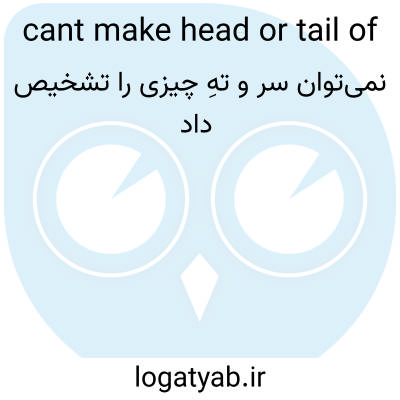 📌 همچنین نمیتوان از چیزی سر و ته ساخت. اگر نفهمید، کاملاً گیج میشوید، مثلاً «من نمیتوانم از این جهات سر و ته بسازم». نسخهای از این اصطلاح به دوران روم برمیگردد، زمانی که سیسرو عبارت Ne caput nec pedes («نه سر و نه پا») را برای توصیف سردرگمی نوشت. در اصطلاح فعلی، اشاره دقیق مشخص نیست: سر و ته ممکن است به معنای بالا و پایین، ابتدا و انتها یا دو روی یک سکه باشند. [نیمه دوم دهه 1600]