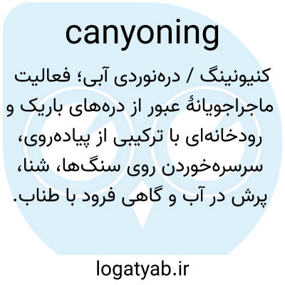 📌 ورزش سفر به پایین رودخانه‌ای که در یک دره واقع شده است با روش‌های مختلفی از جمله پرش با مانع، شناور شدن در آب، شنا و فرود با طناب