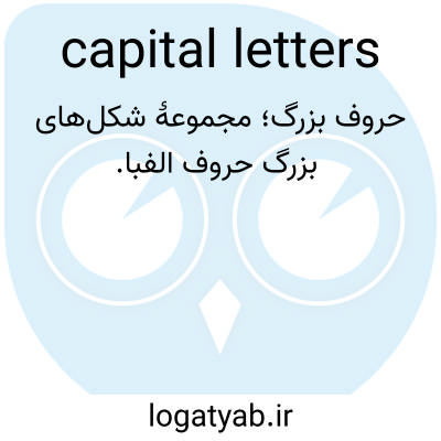 📌 یکی از دو نوع حروف. حروف بزرگ که حروف بزرگ نیز نامیده می‌شوند، بزرگتر از حروف کوچک هستند و اغلب به طور متفاوتی شکل می‌گیرند. حروف بزرگ در ابتدای جمله یا اسم خاص استفاده می‌شوند و ممکن است برای نشان دادن احترام استفاده شوند. برخی از مثال‌ها عبارتند از: «سگی پارس کرد»، «دی آنیل»، «لرد»، و «ملکه الیزابت».