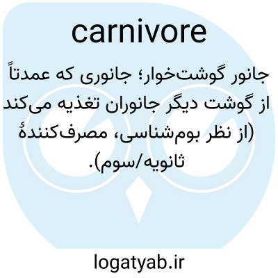📌 هر پستانداری از راسته گوشتخواران که گوشت، ماهی یا سایر گوشتها را، به ویژه به عنوان منبع اصلی غذا، میخورد: ردهای از پستانداران که شامل سگها، گربهها، خرسها، فکها و راسوها میشود.