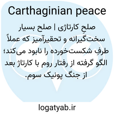 صلحِ کارتاژی | صلح بسیار سخت‌گیرانه و تحقیرآمیز که عملاً طرفِ شکست‌خورده را نابود می‌کند؛ الگو گرفته از رفتار روم با کارتاژ بعد از جنگ پونیک سوم.