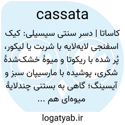 کاساتا | دسر سنتی سیسیلی: کیک اسفنجی لایه‌لایه با شربت یا لیکور، پُر شده با ریکوتا و میوهٔ خشک‌شدهٔ شکری، پوشیده با مارسیپان سبز و آیسینگ؛ گاهی به بستنی چندلایهٔ میوه‌ای هم cassata می‌گویند.