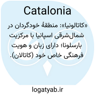 «کاتالونیا»: منطقهٔ خودگردان در شمال‌شرقی اسپانیا با مرکزیت بارسلونا؛ دارای زبان و هویت فرهنگی خاص خود (کاتالان).