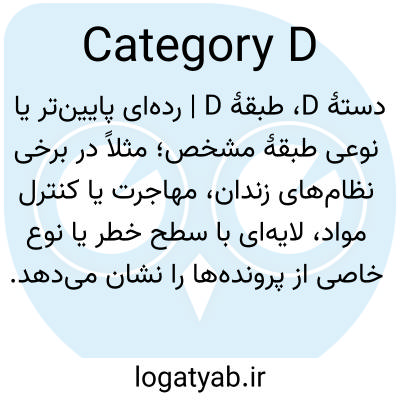دستهٔ D، طبقهٔ D | رده‌ای پایین‌تر یا نوعی طبقهٔ مشخص؛ مثلاً در برخی نظام‌های زندان‌، مهاجرت یا کنترل مواد، لایه‌ای با سطح خطر یا نوع خاصی از پرونده‌ها را نشان می‌دهد.