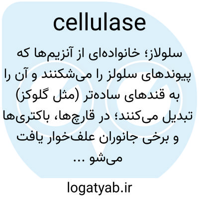 📌 هر یک از چندین آنزیم که عمدتاً توسط قارچها و باکتریها تولید میشوند و هیدرولیز سلولز را کاتالیز میکنند.