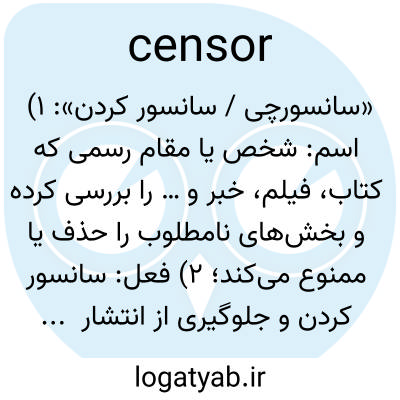 📌 مأموری که کتاب‌ها، نمایشنامه‌ها، گزارش‌های خبری، فیلم‌های سینمایی، برنامه‌های رادیویی و تلویزیونی، نامه‌ها، تلگراف‌ها و غیره را بررسی می‌کند تا بخش‌هایی را که به دلایل اخلاقی، سیاسی، نظامی یا سایر موارد قابل اعتراض تلقی می‌شوند، حذف کند.