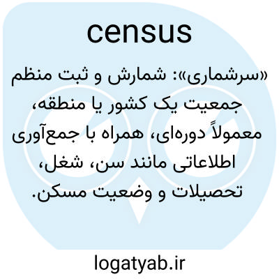«سرشماری»: شمارش و ثبت منظم جمعیت یک کشور یا منطقه، معمولاً دوره‌ای، همراه با جمع‌آوری اطلاعاتی مانند سن، شغل، تحصیلات و وضعیت مسکن.
