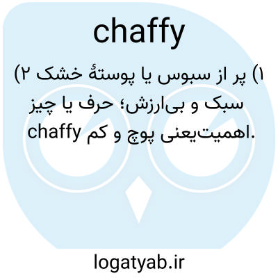 ۱) پر از سبوس یا پوستهٔ خشک ۲) سبک و بی‌ارزش؛ حرف یا چیز chaffy یعنی پوچ و کم‌اهمیت.