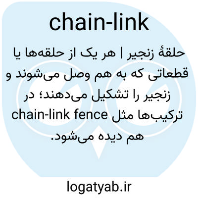 حلقهٔ زنجیر | هر یک از حلقه‌ها یا قطعاتی که به هم وصل می‌شوند و زنجیر را تشکیل می‌دهند؛ در ترکیب‌ها مثل chain-link fence هم دیده می‌شود.