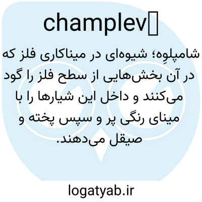 شامپلوِه؛ شیوه‌ای در میناکاری فلز که در آن بخش‌هایی از سطح فلز را گود می‌کنند و داخل این شیارها را با مینای رنگی پر و سپس پخته و صیقل می‌دهند.
