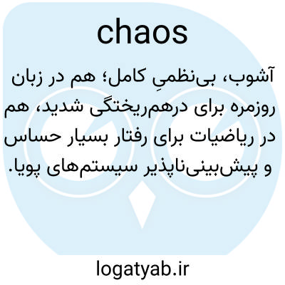 آشوب، بی‌نظمیِ کامل؛ هم در زبان روزمره برای درهم‌ریختگی شدید، هم در ریاضیات برای رفتار بسیار حساس و پیش‌بینی‌ناپذیر سیستم‌های پویا.