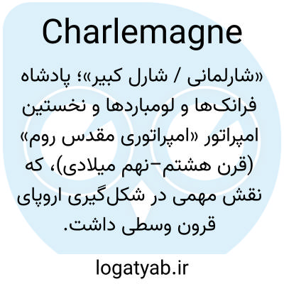 📌 چارلز کبیر، ۷۴۲–۸۱۴ میلادی، پادشاه فرانکها ۷۶۸–۸۱۴؛ با نام چارلز اول، امپراتور امپراتوری مقدس روم ۸۰۰–۸۱۴.