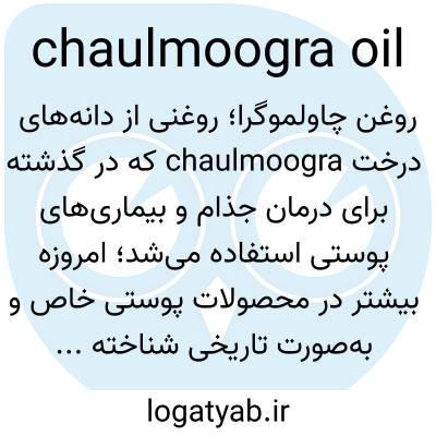 📌 روغن یا چربی نرم زرد مایل به قهوه‌ای که از دانه‌های درخت چالموگرا گرفته می‌شود و قبلاً در درمان جذام و بیماری‌های پوستی مورد استفاده قرار می‌گرفت.