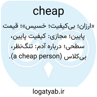 «ارزان؛ بی‌کیفیت؛ خسیس»؛ قیمت پایین؛ مجازی: کیفیت پایین، سطحی؛ درباره آدم: تنگ‌نظر، بی‌کلاس (a cheap person).