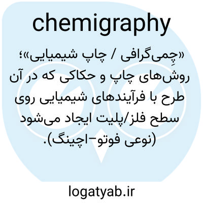 «چِمی‌گرافی / چاپ شیمیایی»؛ روش‌های چاپ و حکاکی که در آن طرح با فرآیندهای شیمیایی روی سطح فلز/پلیت ایجاد می‌شود (نوعی فوتو–اچینگ).