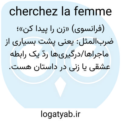(فرانسوی) «زن را پیدا کن»؛ ضرب‌المثل: یعنی پشت بسیاری از ماجراها/درگیری‌ها ردّ یک رابطه عشقی یا زنی در داستان هست.