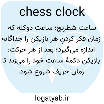📌 یک تایمر برای بازیکنان شطرنج، که برای هر بازیکن یک صفحه مدرج دارد که زمان جمع شده روی آن ثبت میشود و وسیلهای برای متوقف کردن یک تایمر و شروع تایمر دیگر در پایان هر حرکت.