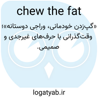 📌 همچنین، جوید دِ رَگ (juy the rag) را. به شیوهای دوستانه و با فراغت گپ بزنید، مانند «بیایید برای قهوه دور هم جمع شویم و چربی را بجویم»، یا جان و دیو ساعتها را صرف جویدن رَگ میکنند. قبل از دهه ۱۸۸۰ در بریتانیا، جوید دِ رَگ به معنای «غر زدن یا شکایت کردن» بود و جوید دِ رَگ نیز به همین شکل استفاده میشده است. امروزه هر دو عبارت تا حد زیادی مترادف یک گفتگوی دوستانه یا جلسه غیبت هستند. اینکه چرا در این اصطلاح از چربی (fat) و رَگ (rag) استفاده شده است، مشخص نیست، اما برخی حدس میزنند که چربی (fat) به موارد آبدار غیبت و رَگ به محافل خیاطی خانمها و پارچهای که هنگام گپ زدن روی آن کار میکردند، اشاره دارد.