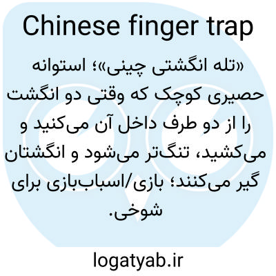 📌 اسباببازی کودکانه، متشکل از یک استوانه کوچک از نی یا کاغذ بافته شده که انگشتان اشاره در هر دو سر آن قرار میگیرند: هرچه محکمتر کشیده شوند، انگشتان محکمتر نگه داشته میشوند.