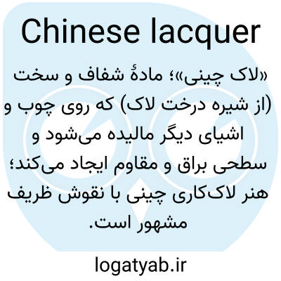 «لاک چینی»؛ مادهٔ شفاف و سخت (از شیره درخت لاک) که روی چوب و اشیای دیگر مالیده می‌شود و سطحی براق و مقاوم ایجاد می‌کند؛ هنر لاک‌کاری چینی با نقوش ظریف مشهور است.