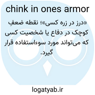 «درز در زره کسی»؛ نقطه ضعفِ کوچک در دفاع یا شخصیت کسی که می‌تواند مورد سوءاستفاده قرار گیرد.
