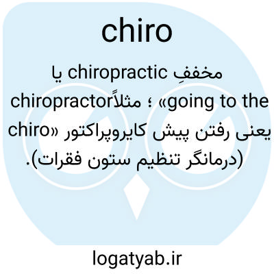 مخففِ chiropractic یا chiropractor؛ مثلاً «going to the chiro» یعنی رفتن پیش کایروپراکتور (درمانگر تنظیم ستون فقرات).