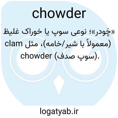 «چَودر»؛ نوعی سوپ یا خوراک غلیظ (معمولاً با شیر/خامه)، مثل clam chowder (سوپ صدف).