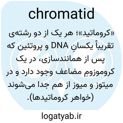 «کروماتید»؛ هر یک از دو رشته‌ی تقریباً یکسانِ DNA و پروتئین که پس از همانندسازی، در یک کروموزومِ مضاعف وجود دارد و در میتوز و میوز از هم جدا می‌شوند (خواهر کروماتیدها).