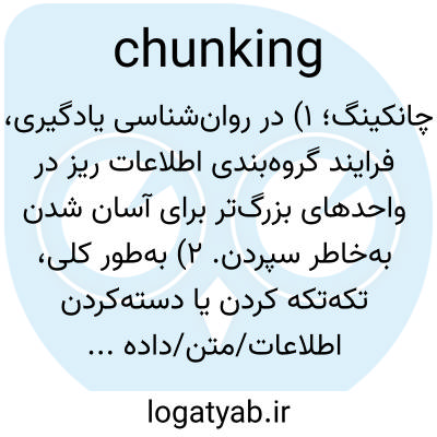 📌 روانشناسی، گروهبندی تعدادی از موارد توسط ذهن، که پس از آن میتوان آنها را به عنوان یک مورد واحد، مانند یک کلمه یا یک عبارت موسیقی، به خاطر سپرد.