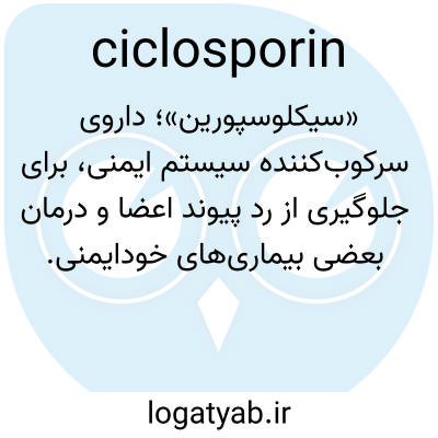 «سیکلوسپورین»؛ داروی سرکوب‌کننده سیستم ایمنی، برای جلوگیری از رد پیوند اعضا و درمان بعضی بیماری‌های خودایمنی.
