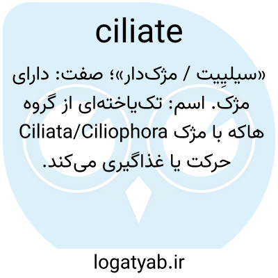 «سیلیِیت / مژک‌دار»؛ صفت: دارای مژک. اسم: تک‌یاخته‌ای از گروه Ciliata/Ciliophora که با مژک‌ها حرکت یا غذاگیری می‌کند.