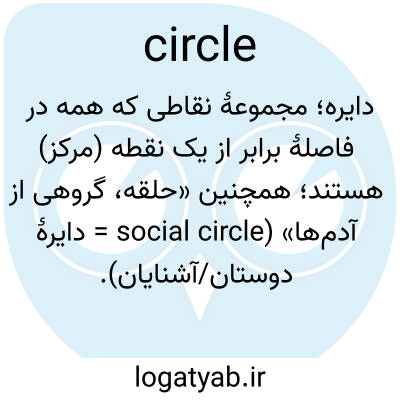 دایره؛ مجموعهٔ نقاطی که همه در فاصلهٔ برابر از یک نقطه (مرکز) هستند؛ همچنین «حلقه، گروهی از آدم‌ها» (social circle = دایرهٔ دوستان/آشنایان).