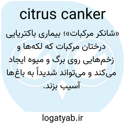 📌 بیماری درختان مرکبات که توسط باکتری Xanthomonas citri ایجاد میشود و با بثورات اسفنجی روی برگها و میوهها مشخص میشود.