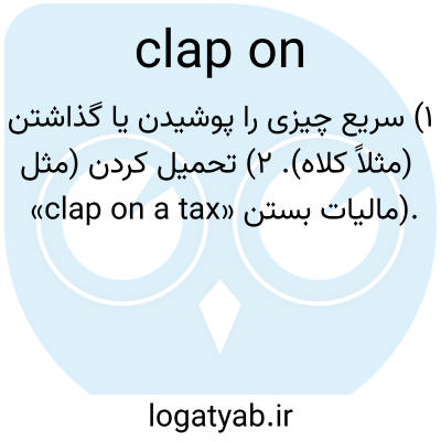 ۱) سریع چیزی را پوشیدن یا گذاشتن (مثلاً کلاه). ۲) تحمیل کردن (مثل «clap on a tax» مالیات بستن).