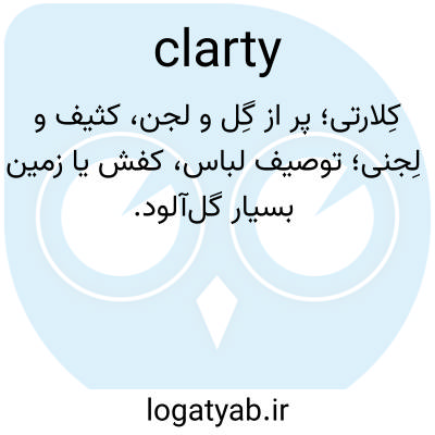 کِلارتی؛ پر از گِل و لجن، کثیف و لِجنی؛ توصیف لباس، کفش یا زمین بسیار گل‌آلود.