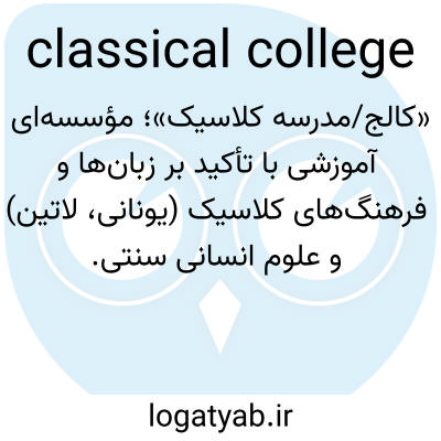 📌 (در کبک) کالجی که برنامهای ارائه میدهد که بر آثار کلاسیک تأکید دارد و منجر به ورود به دانشگاه میشود